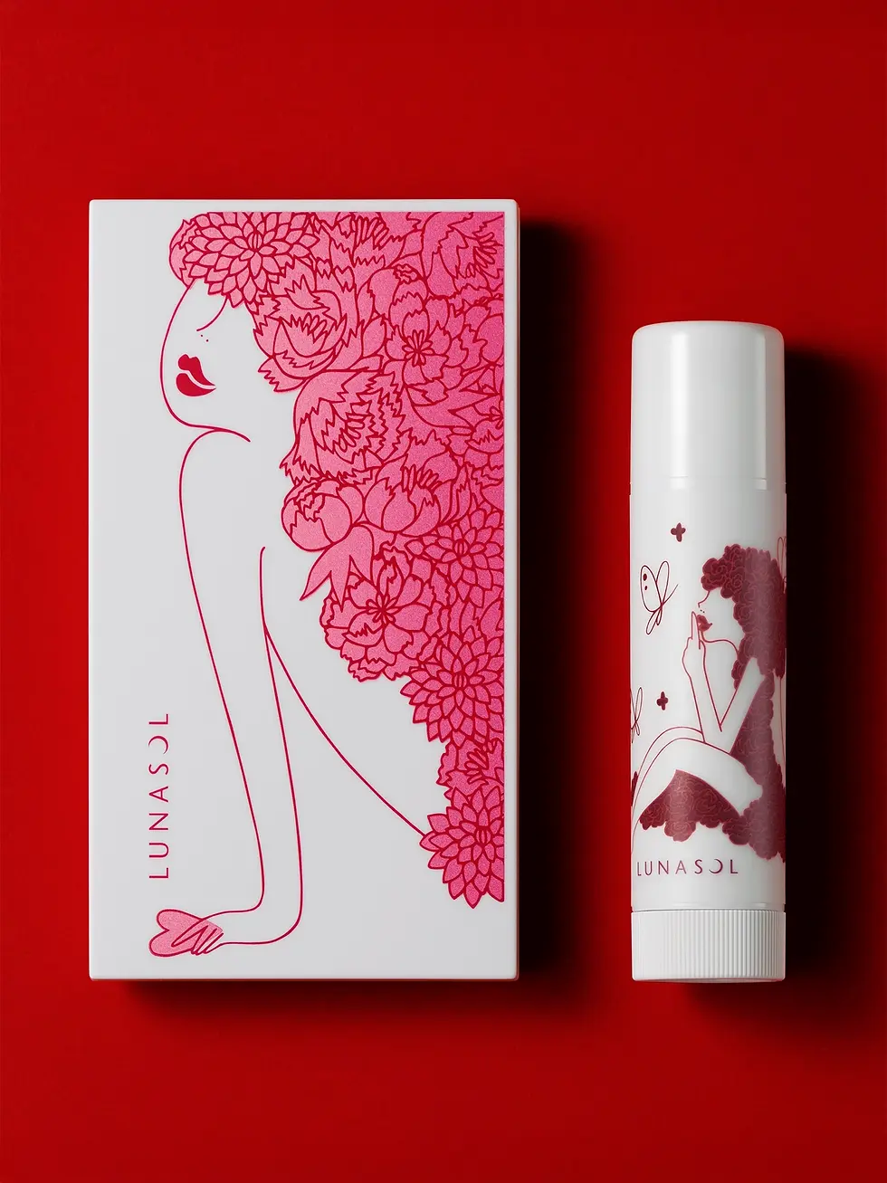 コスメティックブランド「LUNASOL」とのアーティストコラボレーション企画として、バレンタインシーズン限定のリップコレクション向けに、2種類のパッケージデザインを手がけました。パレットは華やかで特別な季節感を意識し、ラメ入りのピンクで表現した植物やハートのモチーフが、光を受けて繊細にきらめきます。一方、リップバームは洗練された中にも遊び心を感じさせる“大人キュート”なテイストで、日常にも溶け込む愛らしさを表現しました。どちらも、バレンタインという特別な瞬間を彩るこだわりのデザインです。
