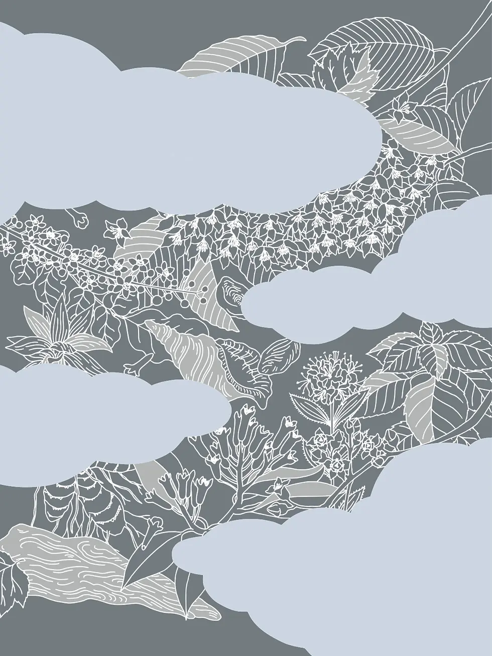 日本の伝統を香りで体験できるお香ブランド Bridge and Blend のアニバーサリーボックス「Sx in Sense」で、デザインとアートディレクションを担当しました。ブランド1周年を記念して制作されたこのブック型ボックスは、香りの辞典としても楽しめる仕様です。表紙には、おめでたい出来事の前兆とされる「瑞雲」の奥に、お香の原材料となる植物が静かに生い茂る情景を描きました。6つの香りが生まれた源氏物語の時代を感じさせる和の世界観を重んじつつ、現代的な洗練さを意識し、形状や構造も含めてパッケージ全体をデザインしています。
